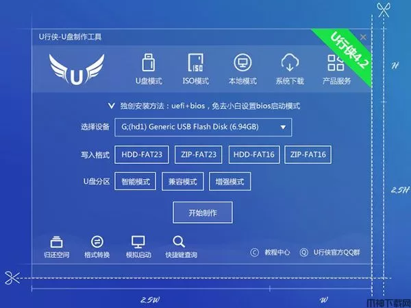 U行侠U盘制作工具是一款功能非常不错的U盘启动制作工具,U行侠u盘启动盘制作工具以简单的操作,配合简约而实用的配置,让您手中的U盘既可以成为系统引导盘,又可以保持U盘原有的功能存储文件数据,真正做到一盘两用的强大功能支持,并且传统bios与