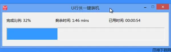 7、点击 “安装系统” 按钮后,U行侠一键装机便开始安装原版Win10系统,我们只要等待完成即可,如下图所示: