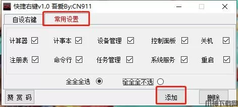 5、也可以点击常用设置,软件默认10个快捷键,用户可根据需求进行选择,再点击添加