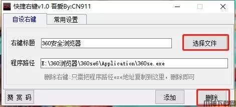 7、如果不需要快捷键了可点击选择文件,选择不需要的快捷键,点击删除即可删除快捷键