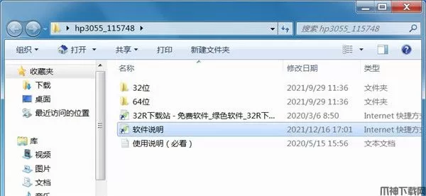 1、从本站下载惠普3055驱动压缩包后,将其解压后即可看到32/64位的驱动适配版本;