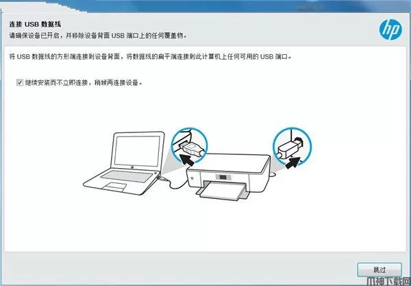 6、出现此界面是因为没有连接打印机设备,勾选上方方框,点击下方跳过;