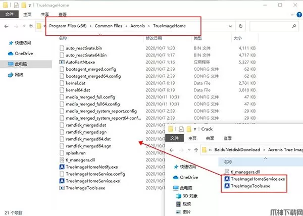 5、将crack文件夹下的“TrueImageHomeService.exe”复制到源程序安装目录下。