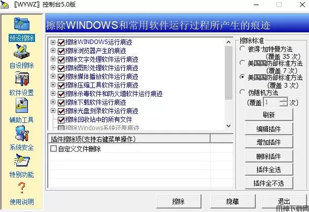 3、插件擦除:该项功能可根据你选择的插件進行擦除。系统预定义擦除模块与自定义擦除二种模式互为补充,插件的编辑运用软件。
