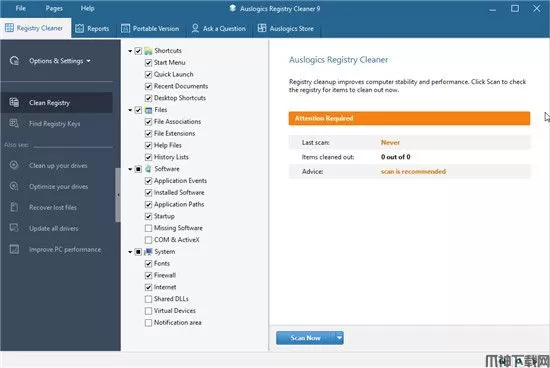 Auslogics Registry Cleaner是一款十分优秀好用的系统注册表清理辅助工具应用,拥有着最直观简约的操作界面,不仅功能强大,且使用便捷,其主要功能便通过专业简单的技术,帮助你清理,修复和优化您的Windows注册表集合,以消除错误和崩溃并恢复平稳稳定的操作。从而使你的电脑运行系统更加的极速、流畅。而且,Auslogics Registry Cleaner中不仅内置了专业的激活文件可帮助你免付费解锁全部功能,并且相较于上一版本而言,在功能上更加的强大、全面,新增了如深度注册表优化,通知设置控制以及扩展优先支持等一系列功能,旨在为你清除Windows注册表中的损坏或过期条目提供最专业、有效的解决方案。让你再也不用担心因为注册表问题造成系统崩溃和出错啦!有需要的朋友来下载体验吧。