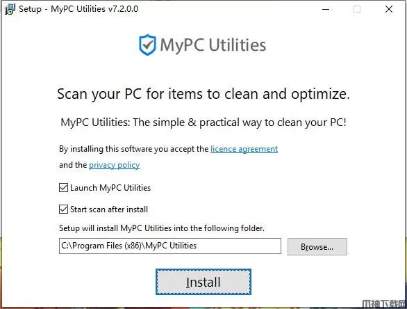 安装向导默认设置的软件默认安装路径为C:\Program Files (x86)\MyPC Utilities