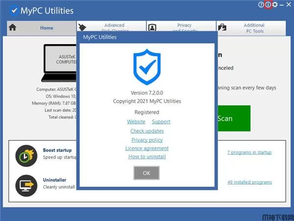 4、双击打开MyPC Utilities软件,点击红色选框,如下图软件破解完成,可以放心使用软件