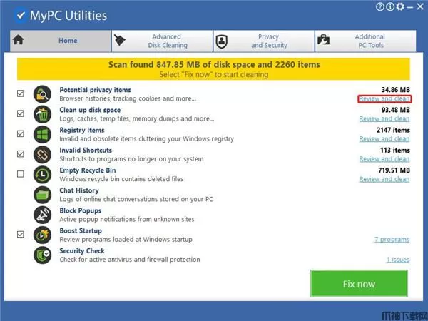 4、点击Fix now全部修复,从而将检测到的数据清理