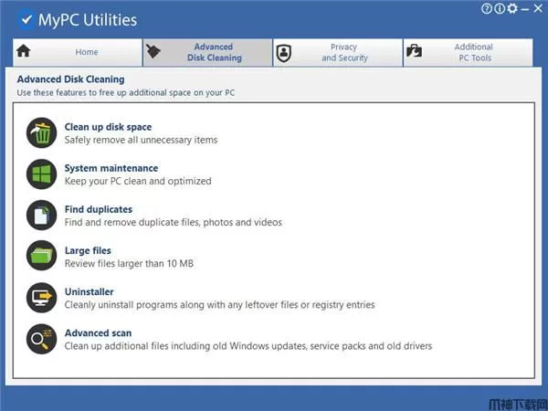 5、Advanced Disk Cleaning可以对磁盘更多的数据清理,使用这些功能释放PC上的额外空间