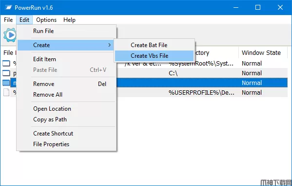 1. 选择程序2。并使用Edit - create - create bat/Vbs文件特性