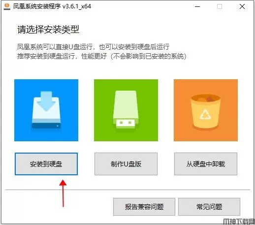 3、之后是对安装介质的选择,小编在这里只向大家示范安装在硬盘的教程,如果各位小伙伴们想要试试U盘等其他的安装方式,可以自行体验
