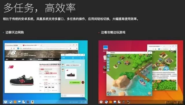 2、多任务,高效率,相比于传统的安卓系统,凤凰系统支持多窗口、多任务的操作,应用间轻松切换,大幅提高使用效率。