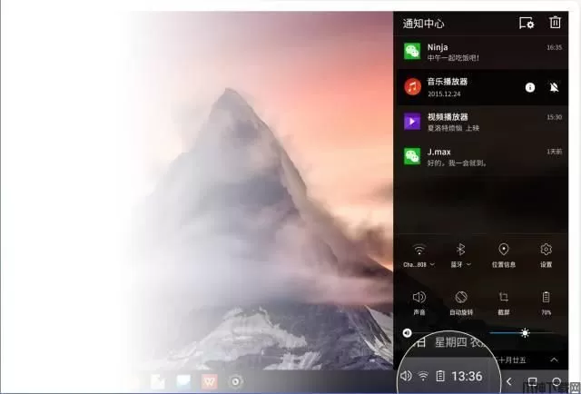 7、通知中心,通过点击任务栏右下角图标唤出的通知中心,不仅可以批量管理通知消息,还聚合了常用的快捷设置。