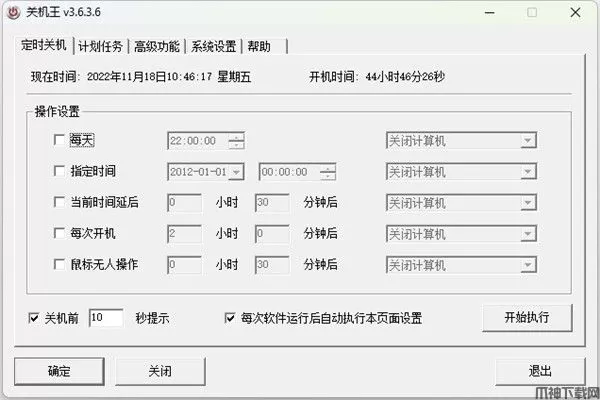 关机王定时关机软件一下功能。