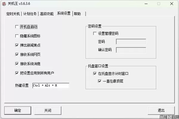 ★隐藏系统图标:隐藏关机王在电脑下方状态栏的图标