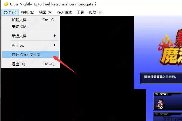 1、这里以citra模拟器电脑版为例。打开一款已存档的游戏,并点击模拟器上方的文件选项卡。