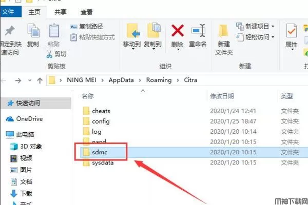 3、在如图所示的文件夹中,选择sdmc文件夹。