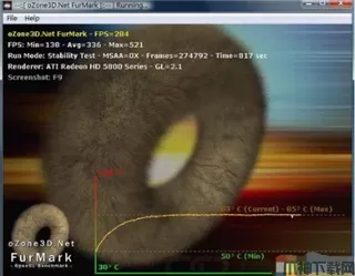 2一般测试的时候会有一个测试窗口出现,上边都是有关显卡的温度曲线,可以让你随时了解到当前显卡的工作状态。如果想测试显卡是否超频成功,需要你将该测试持续十分钟以上才有效果,且这十分钟内不可以有任何的外力干扰,测试时不出现死机、花屏等异常提示就可以了。你也可以将显卡的频率稍稍降低点,直到测试结束即可。