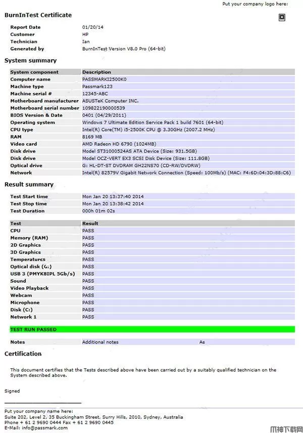 8、与PassMark管理控制台 Web服务器应用程序集成,用于集中存储测试结果。