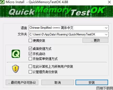 QuickMemoryTestOK为用户快速检测RAM中的错误,避免突如其来的问题,测试您的Windows在高内存行为上会引发其他系统错误等,快速一键开始测试,并显示详细的信息,使用起来简单友好,如果您的计算机根本无法启动或随机重启,很可能是遇到了内存的问题;QuickMemoryTestOK中,如果分析显示错误就说明你的内存设备有问题,需要及时和商家兑换,现在网上出售的部分内存设备是有缺陷的,如果你新买入一款内存设备,可以提供这款软件预先测试,从而及时了解当前设备的参数以及性能。
