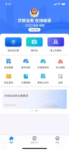 北京交警ios版是一款专为首都京城推出的出行车务管理平台。软件界面清晰,功能操作简便,能让广大用户快速上手使用。北京交警ios版功能强大,支持事故e处理、违法查缴、违法举报以及进京证办理等服务。软件为用户提供快速处理交通事故,在线保险报案理赔一站式提供解决方案。