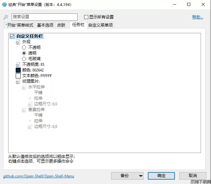 除了经典的开始菜单和Explorer工具栏外,Open-Shell还允许用户自定义任务栏的外观、透明度、颜色等属性。此外,用户还可以自定义开始按钮的样式和皮肤,以及菜单项的内容和排序方式。