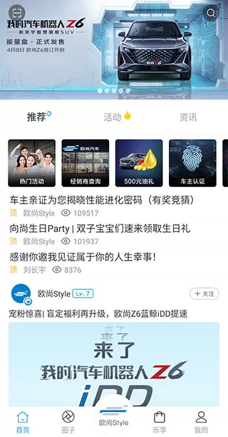 1、进入软件【首页】之后,我们就能看到一些推荐的新闻资讯内容,并且还有热门活动、车主认证等常用功能。