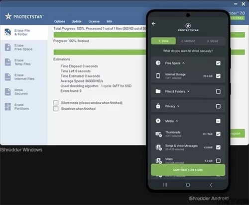 集成强大的ProtectStar安全删除算法©可实现故障安全数据安全。详细的删除日志提供了删除的证据