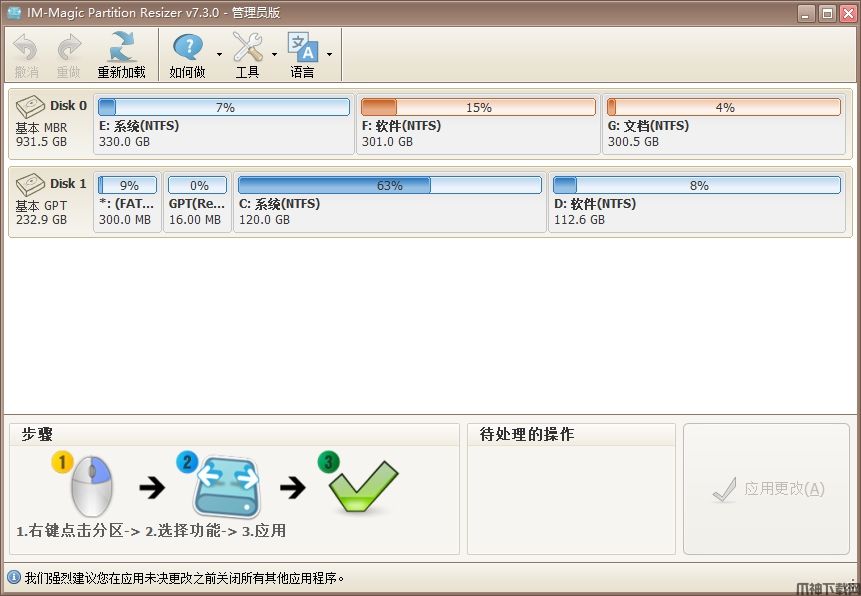 使用IM-Magic Partition Resizer Free,可以缩小/扩展磁盘卷大小而不会丢失数据。您可能会减少一个很大的卷,而该卷占用的可用空间过多而没有格式化。扩展分区,保持数据不变。
