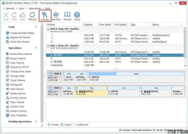 NIUBI Partition Editor是一款非常专业且的电脑磁盘分区软件,它比其他实用程序更好地集成了独特的回滚数据保护技术,该技术能够在发生任何硬件问题之前将计算机回滚到自动调整大小之前的状态,因此您无需担心数据安全。
