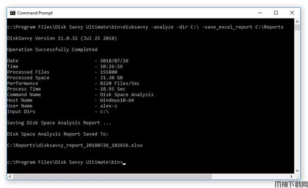 除了Disk Savvy Pro桌面GUI应用程序之外,IT管理员还具有一个命令行实用程序,可用于执行磁盘空间分析操作,保存磁盘空间使用情况报告并将磁盘空间分析结果导出到SQL数据库。Disk Savvy Pro命令行实用程序可用于自动执行磁盘空间分析操作,并将磁盘空间分析功能集成到用户自定义批处理文件和Shell脚本中。