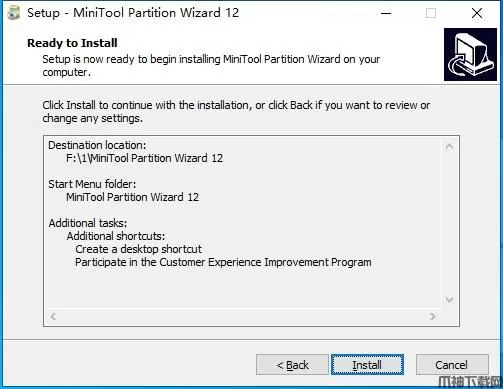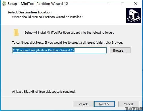 安装向导默认设置的软件默认安装路径为C:\Program Files\MiniTool Partition Wizard 12