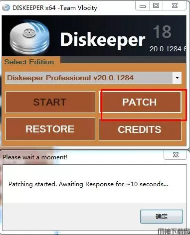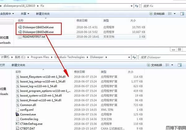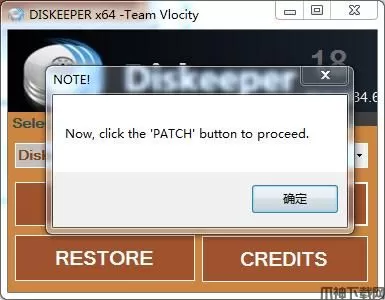 5.小编是64位系统,将64位补丁Diskeeper18AIOx64复制到安装目录并运行,点确定(提示我们需要断开网络,记得一定要断开网络)默认位置:C:\Program Files\Condusiv Technologies\Diskeeper
