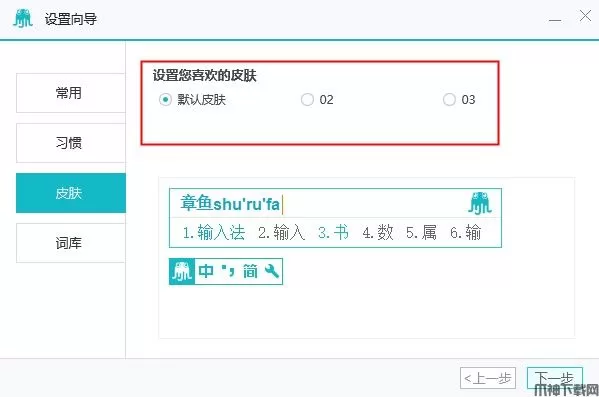 1、下载解压安装包,运行setup_OctopusInput.exe,接受条款,然后选择路径一键安装; 2、安装完成后会进入设置向导,常用中我们可以设置候选字数、模糊拼音、设置默认输入法等; 3、在习惯设置中,用户可以根据自己的习惯设置; 4、同时章鱼输入法电脑版还提供风格迥异的个性皮肤,需要的用户可以在皮肤设置中调整; 5、最后选择需要的词库,就看开始使用章鱼输入法电脑版了。