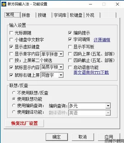 新方快码输入法具有30多项实用功能,如同音字显示、成语显示、英语显示、汉字动画笔顺演示、打字发音、速查备忘录、中外文互译等。