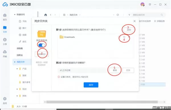 上部区域为选择云端文件夹,第3可以添加,第4可以删除。