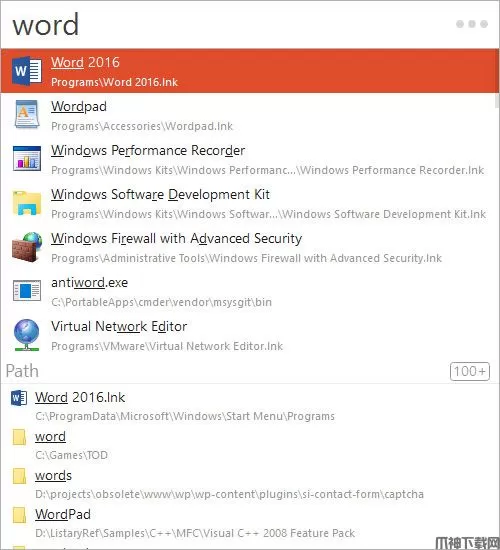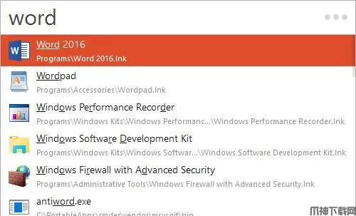 例如,单击Ctrl两次,然后键入“ Word”,Listary将打开Microsoft Word。或者,为PowerPoint输入“ pp”,为Photoshop输入“ ps”,瞧!Listary打开程序!