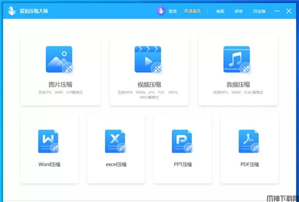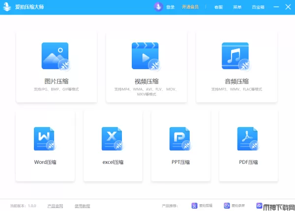 爱拍压缩大师官方版是一款强大、便捷的文件压缩软件,这款软件不仅能够为用户们提供视频、音频、图片、PDF、文档等快速批量压缩,而且压缩清晰度接近原文件以及提供本地高速压缩服务,为用户们解决文件上传慢、文件大上传难等各种问题。同时针对用户不同的使用场景,爱拍压缩大师除了提供音视频等多媒体文件的体积压缩,好包含视频压缩、视频基本参数调整、音频压缩、图片压缩、图片基本参数调整、GIF压缩、Word压缩、Excel压缩、PPT压缩、PDF压缩等功能,来满足用户几乎所有PDF日常使用所需。