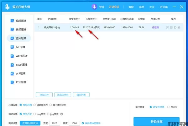 2、添加图像到软件就可以自动显示压缩前后的大小。