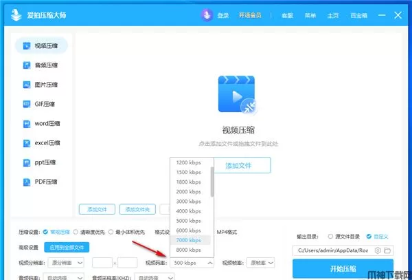 4、视频码率设置功能,可以选择6000 kbps、7000 kbps、8000 kbps。