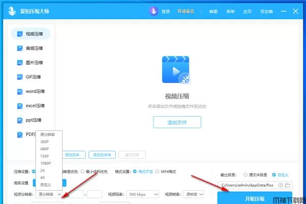 5、视频分辨率设置功能,可以在这里设置较低的分辨率,选择720P、1080P、2K。