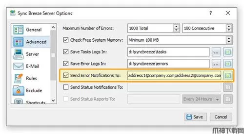 2、添加了向多个目标地址发送错误通知的功能
