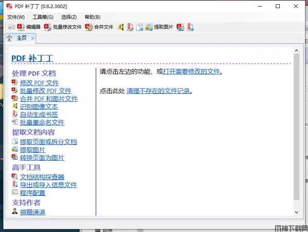 PDF补丁丁是由WMJordan制作的一款名字非常有意识的PDF文件修改软件,这款软件已经整整有着九年的历史了,是一款非常简洁方便的多功能PDF工具箱,使用感舒适,不仅功能强大,而且它的操作也十分的简单,没有繁复的操作步骤,大多的操作都是一步到位。它能够帮助你修改PDF、编辑PDF书签、导出PDF书签、导入书签、生成、合并、拆分、提取页面内容、提取图片、OCR识别等,几乎可以满足您对PDF文件处理的各类需求。PDF补丁丁无需安装,下载解压即可使用,方便快捷。PDF的强大只有用过才能知道,如果你需要这类软件,不妨下载体验一番。