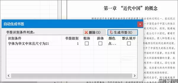 完成上述步骤后,“自动生成书签”对话框的列表会更新,如下图所示(图中第二项是新增的文本与标题映射关系)。