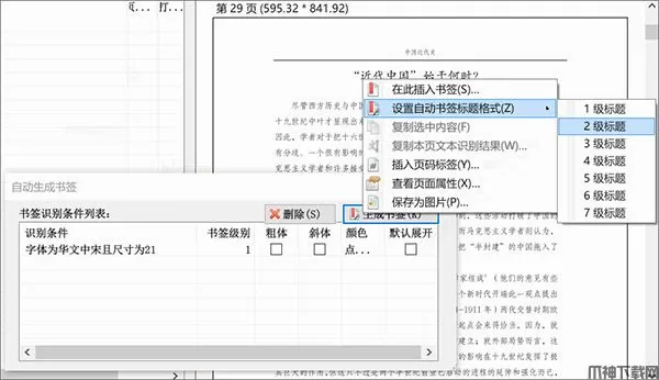 3、生成PDF书签:无需手工输入,自动识别正文标题或目录,为PDF文档生成书签。