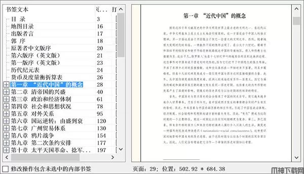 2、贴心PDF书签编辑器:带有阅读界面(具有便于阅读竖排文档的从右到左阅读方式),可批量修改PDF书签属性(颜色、样式、目标页码、缩放比例等),在书签中执行查找替换(支持正则表达式及XPath匹配、可快速选择篇、章、节书签),自动快速生成文档书签。