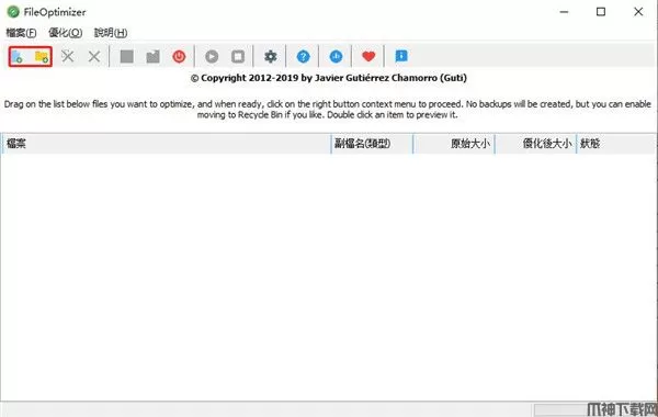 1、双击打开FileOptimizer软件,点击红色选框,选择要压缩的文件