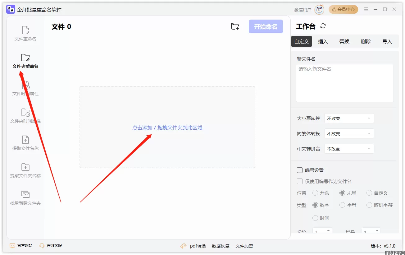 1、点击选择“文件夹重命名”功能,然后将文件夹选中并拖拽到以下虚线框内。