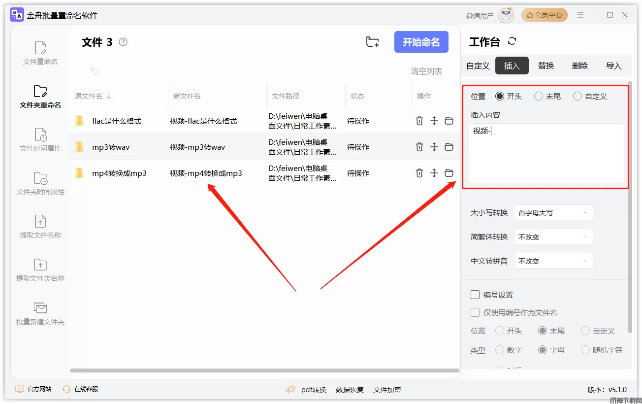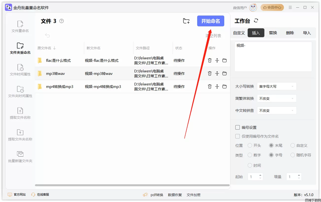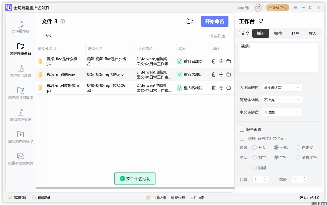 支持自定义/替换/插入等多种方式一键修改文件名,自定义扩展名,轻松修改文件名和文件类型。