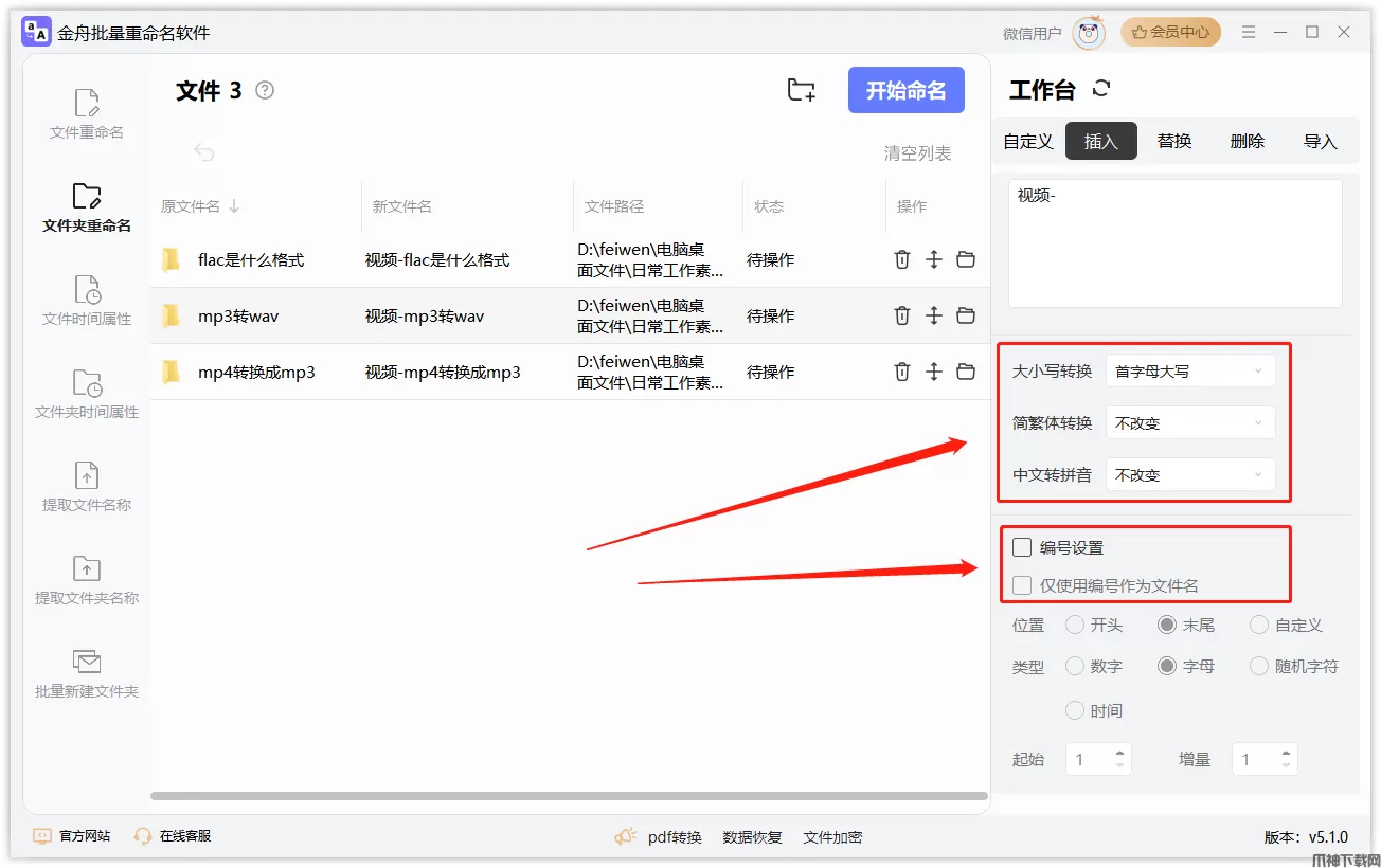 4、命名规则可以设置大小写、繁体转换和中英文转换,必要的话还可以设置编号。
